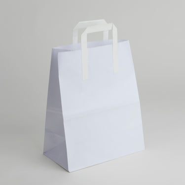Our white takeaway bags are a strong, eco-friendly packaging solution for food businesses, cafés, and retail shops. Their flat bottom design offers stability, making them ideal for carrying food containers and drinks without spills. A great alternative to plastic bags, these biodegradable takeaway bags help businesses reduce their environmental impact. Order now for fast and reliable delivery!